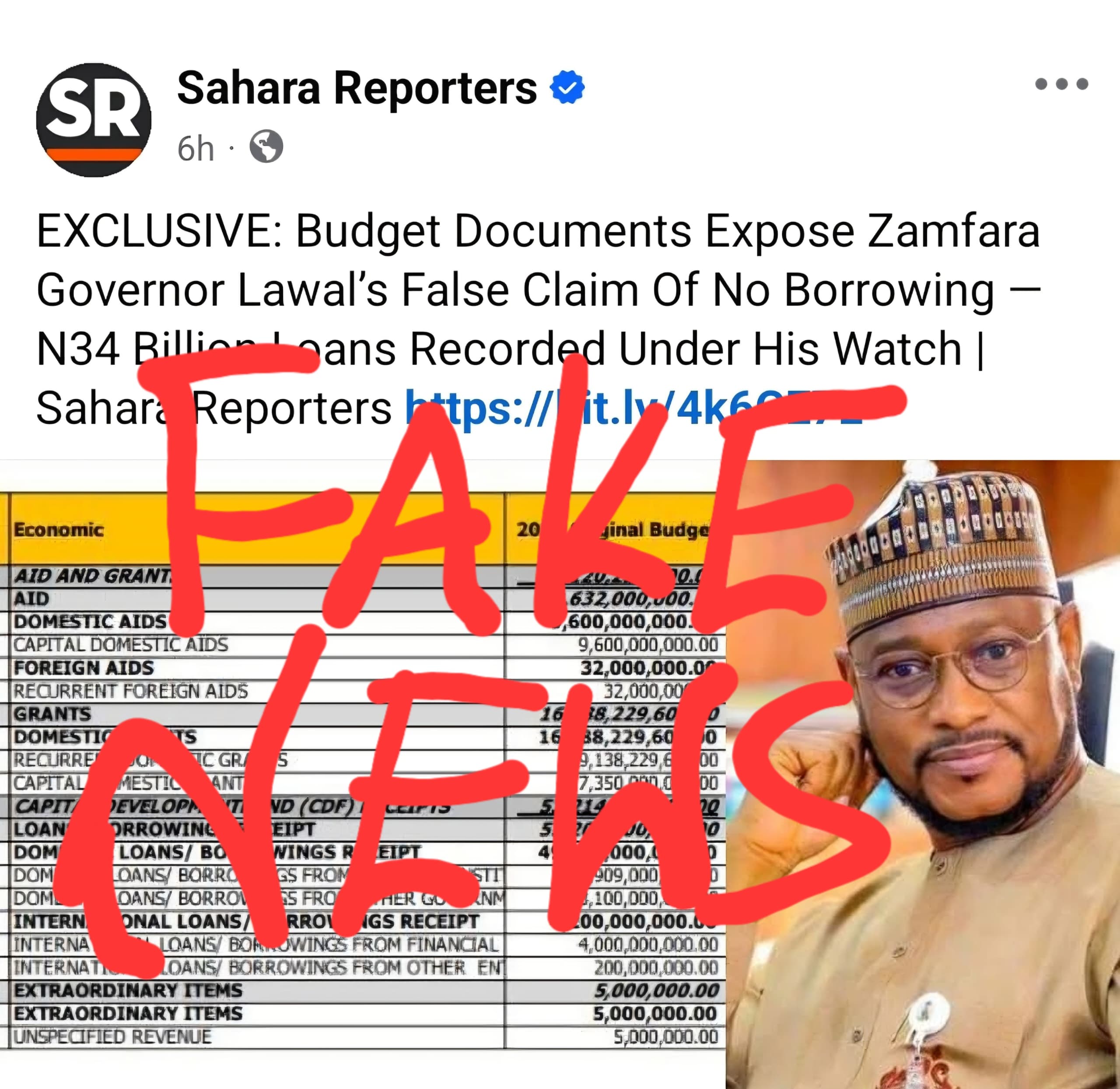 A ranar Litinin da ta gabata ne Sahara Reporters ta buga wani labari mai taken ‘RAHOTON MUSAMMAN: Takardun Kasafin Kuɗi Sun Fallasa Ikirarin Ƙarya Da Gwamnan Zamfara Lawal Ya Yi Na Rashin Karbar Lamuni — An Karbi Bashin Naira Biliyan 34 A Ƙarƙashin Gwamnatinsa’.